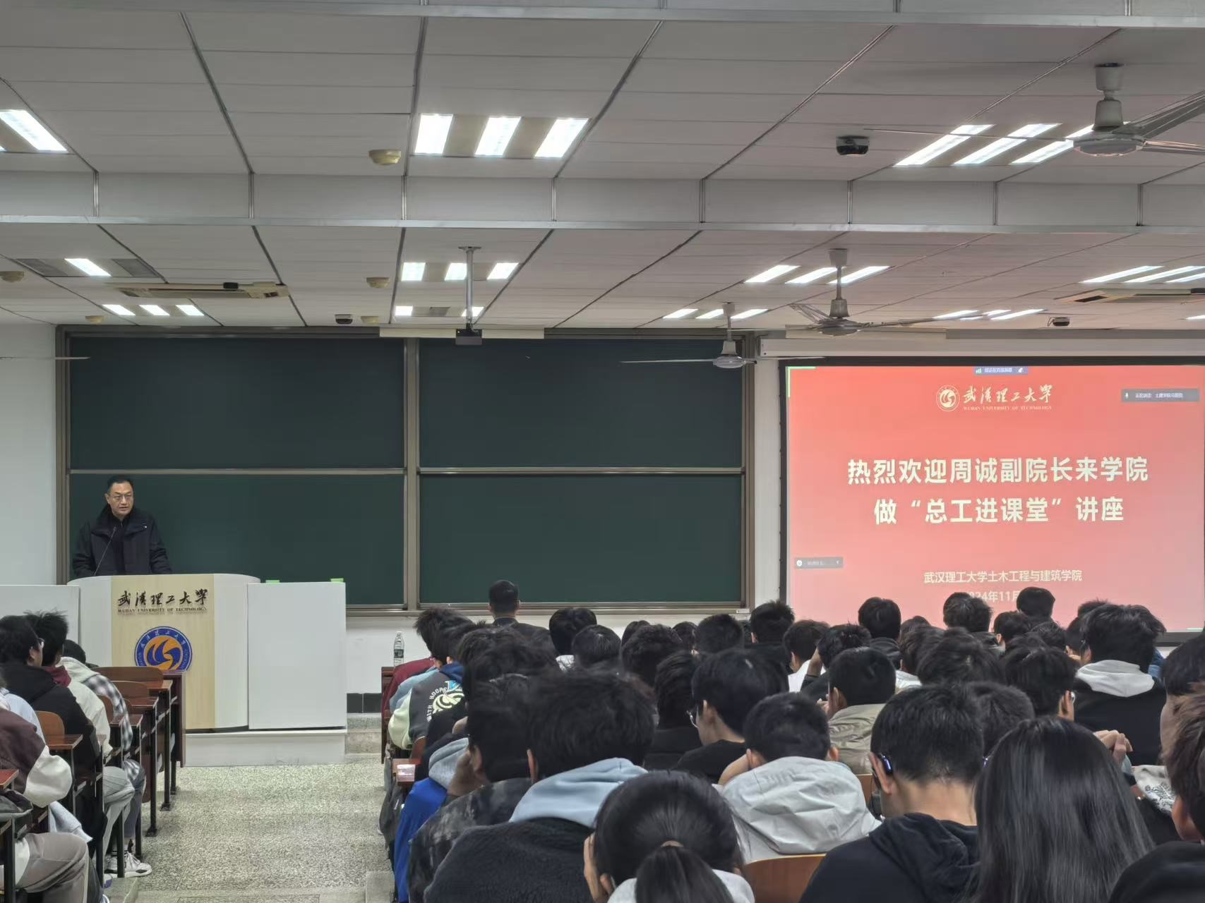应副院长陈伟教授邀请,华中科技大学土木与水利工程学院副院长、国家数字建造技术创新中心副主任周诚教授来到学校南湖校区,为学院本科一年级全体同学做了题为《月球基地建造研究进展与科学技术挑战》的学术讲座。