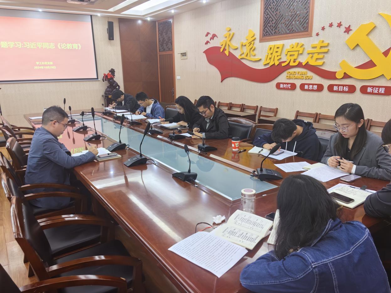 为加强党支部建设,强化支部党员的党性修养与理论水平,电竞盘口 学工办党支部于10月28日在电竞盘口 216会议室开展习近平同志《论教育》专题学习活动。本次会议由周旭老师主讲,党支部全体党员参与。