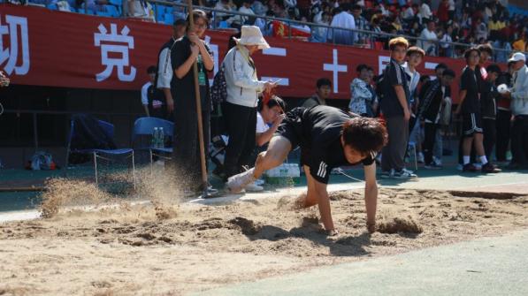 随后,正式运动会比赛开始。本次运动会中,本科生项目在主田径场举办,教职工趣味项目在副田径场举行。学院的运动健儿们展示出坚韧不拔的毅力,无论是田赛还是径赛,他们都从未放弃,在跑道上奋力奔跑,在沙地上释放全力。