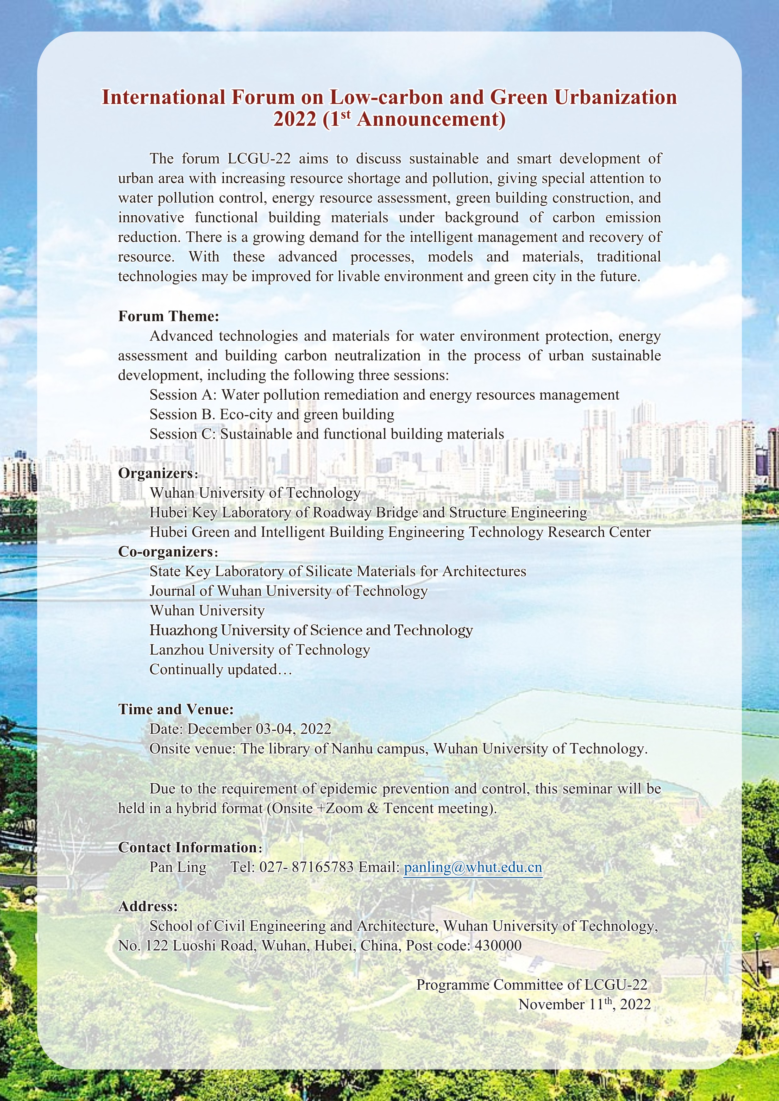 International Forum on Low-carbon and Green Urbanization 2022 (1st Announcement)