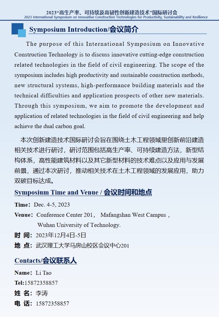 2023“高生产率、可持续及高韧性创新建造技术”国际研讨会