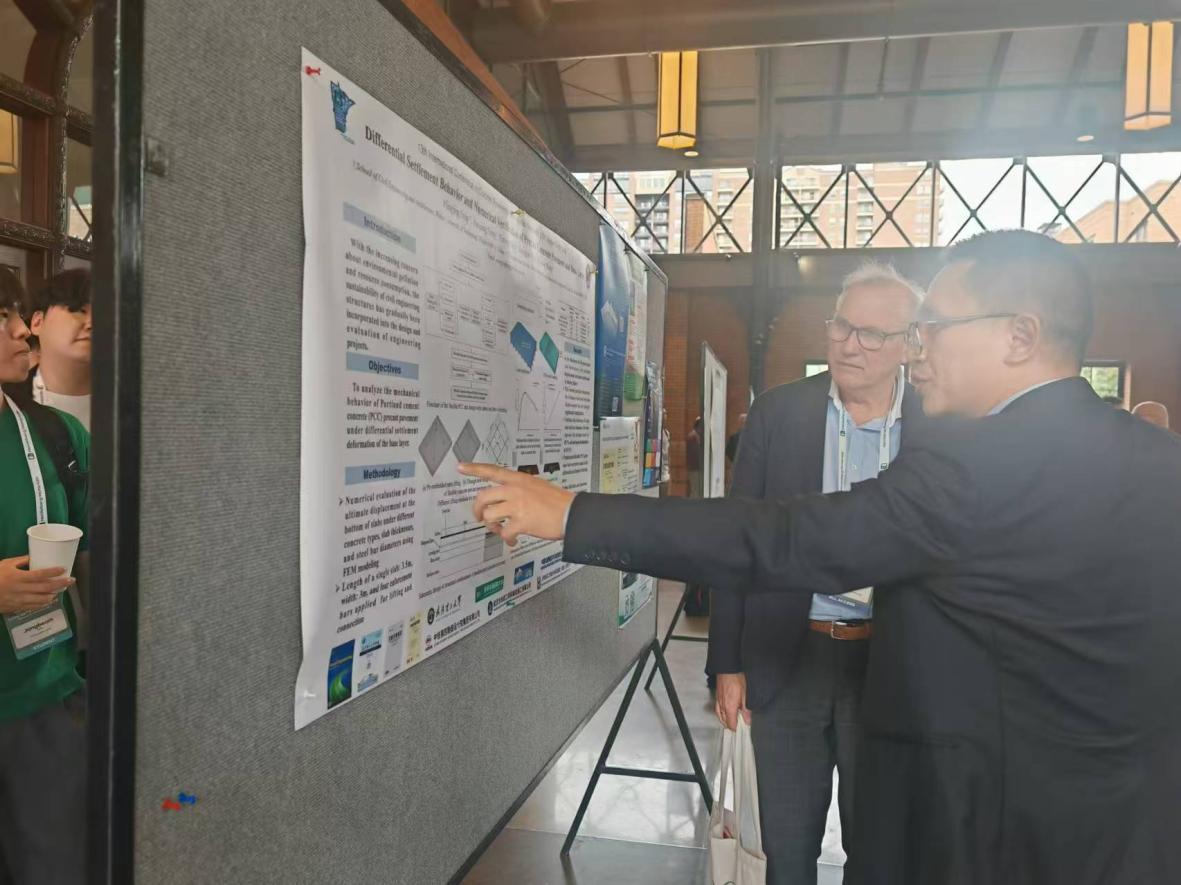 8月25-29日,在明尼苏达州明尼阿波利斯市,第13届混凝土路面国际会议(13th International Conference on Concrete Pavements, ICCP),方明镜副教授以墙报形式汇报了课题组与铁四院交通院联合开展的路用柔性混凝土材料在装配式混凝土路面中的研究进展,并与感兴趣的参会学者交流了“Differential Settlement Behavior and Numerical Verification of Precast Concrete Pavement and Base Layer”(装配式混凝土路面与基层差异沉降行为与数值验证)相关工作。