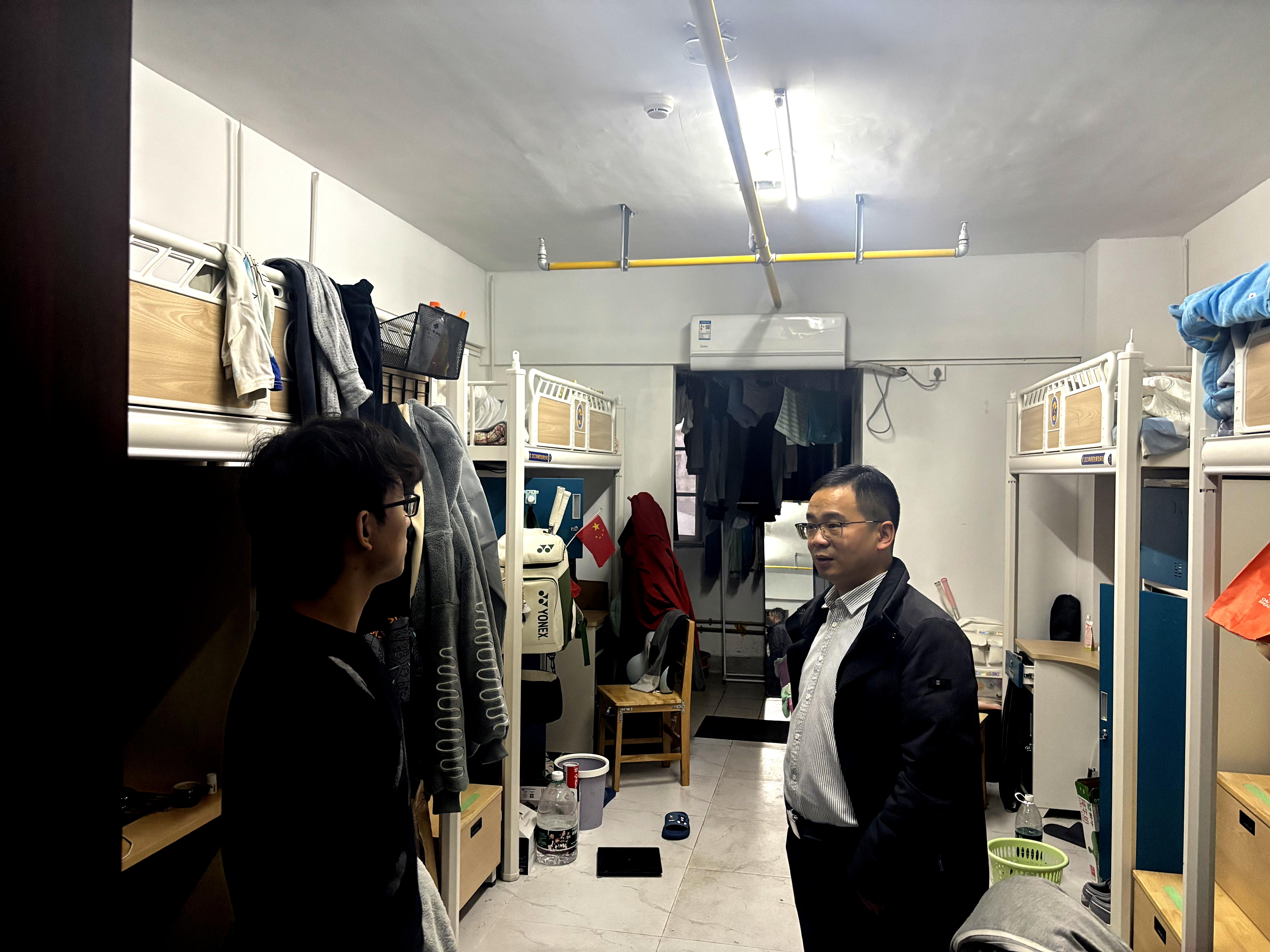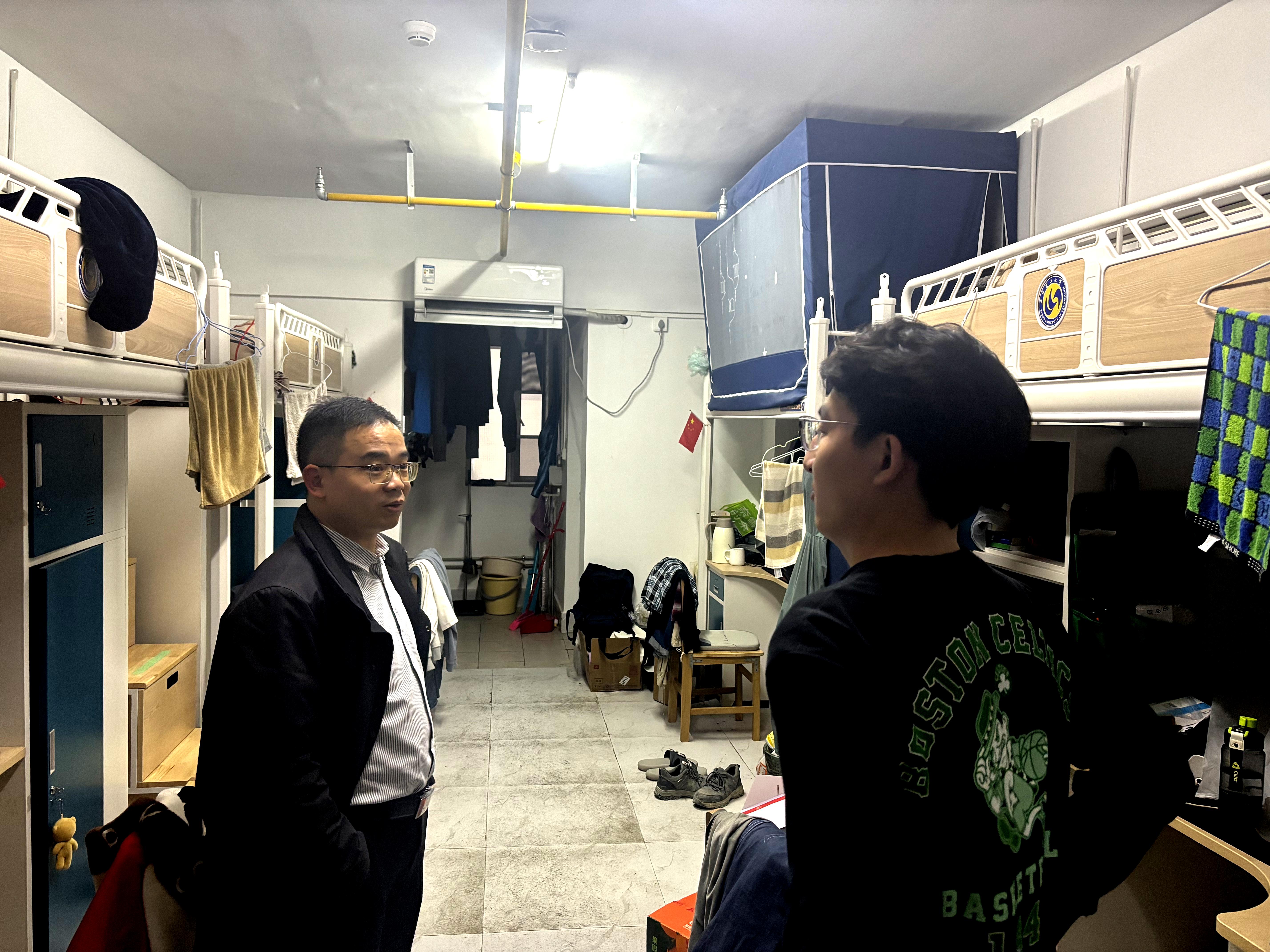 为确保宿舍安全稳定,彻底排查潜在的安全隐患,保障学生宿舍在放假前的安全,电竞盘口 党委副书记尚亿军与学工办全体辅导员深入学生寝室、实验室等地,执行放假前的安全隐患排查工作。