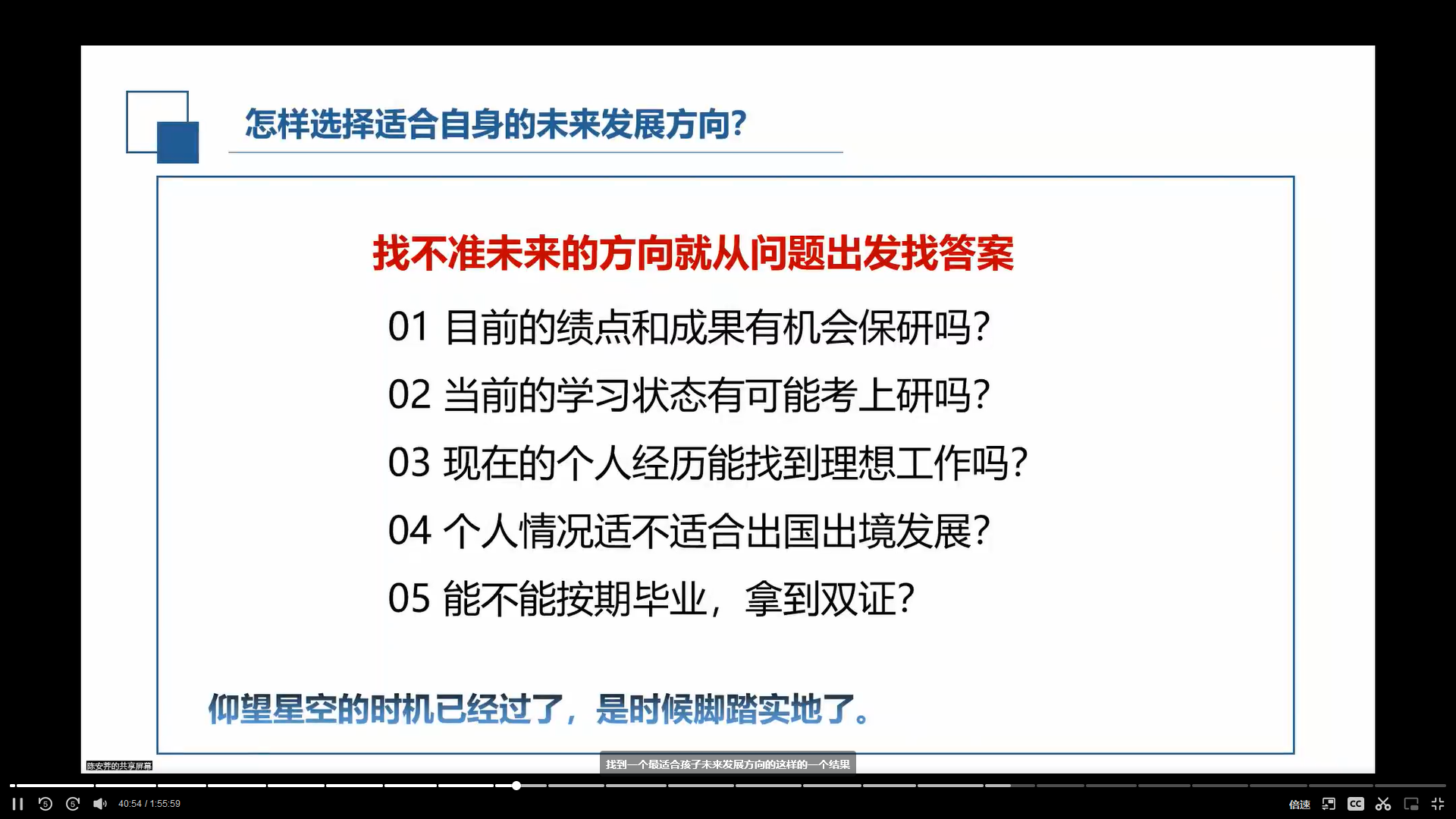 随后,陈老师向家长介绍学生可能的职业规划与未来发展路径。陈老师以往届毕业生的去向情况介绍学生毕业后的发展方向,包括国内升学、出国(出境)留学和就业等。同时,也提到了一些可能面临的挑战,如个人经历不足、学业警示等。建议家长和学生利用寒假面对面规划未来发展方向,充分利用自身优势,尊重学生的选择,更好地做出决策。