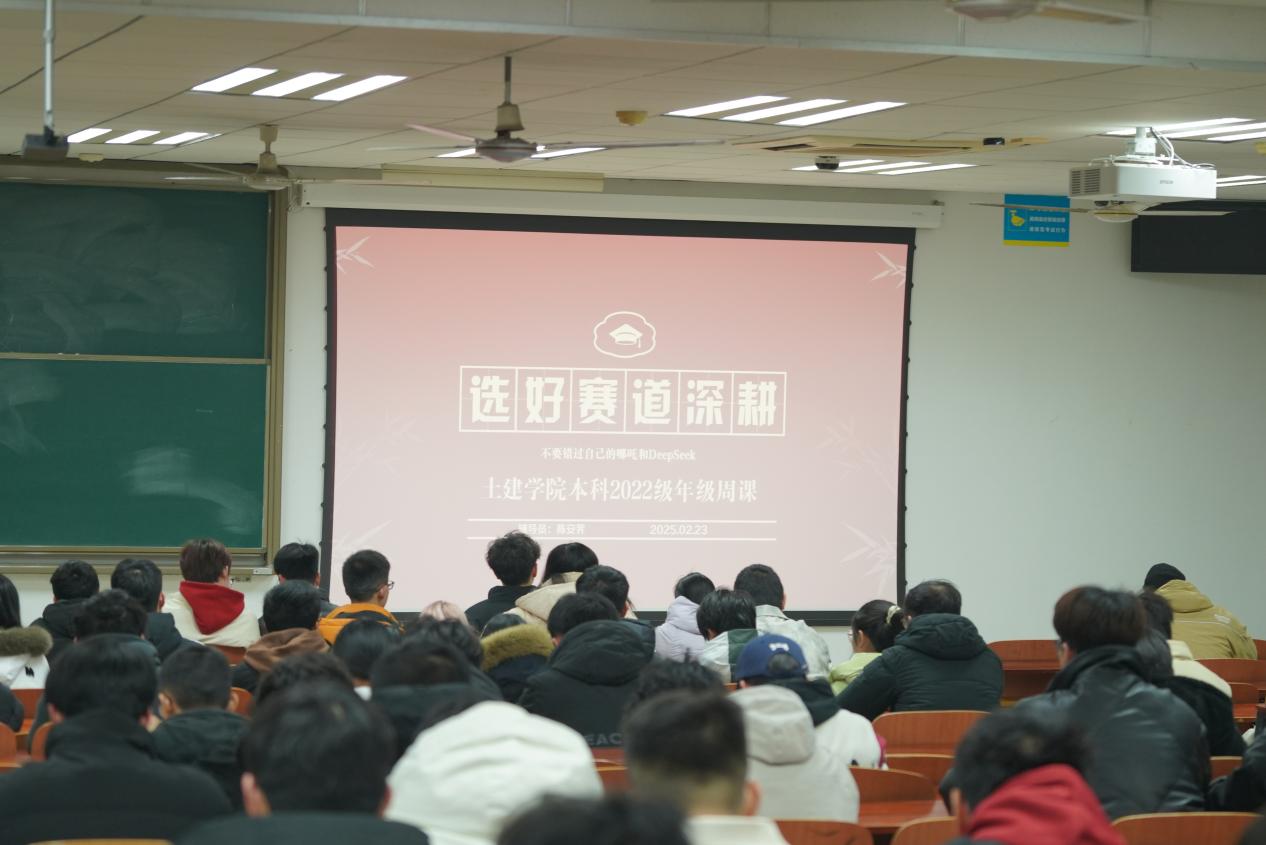 随着寒假的收尾,同学们迎来了新的学期,2月23日下午,电竞盘口 本科2022级在新一307教室开展以“选好赛道深耕”为主题的年级周课。辅导员陈安荠老师以寒假期间的热词“哪吒2”和“DeepSeek”为切入点,结合行业案例和个人成长路径,深入探讨同学们应当如何以长期主义精神规划自己的未来。