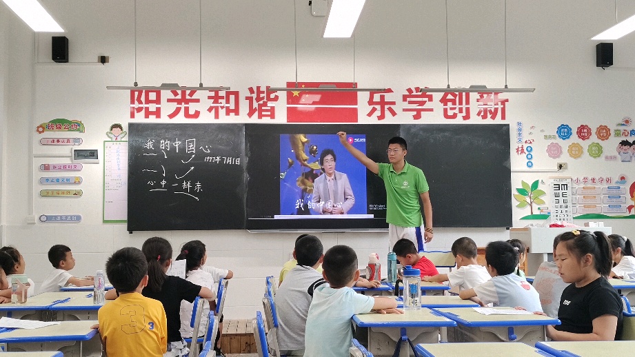 “同学们,这首歌教会了我们什么?”合唱之后,实践队员对《我的中国心》的歌词内容与主题思想进行了总结,教导学生无论身在何处,都要心向祖国,强调无论个人经历如何变化,对中华文化的认同和归属感要始终不变,鼓励学生在面对困难和挑战时,要团结一致,共同为祖国的繁荣富强而努力奋斗。