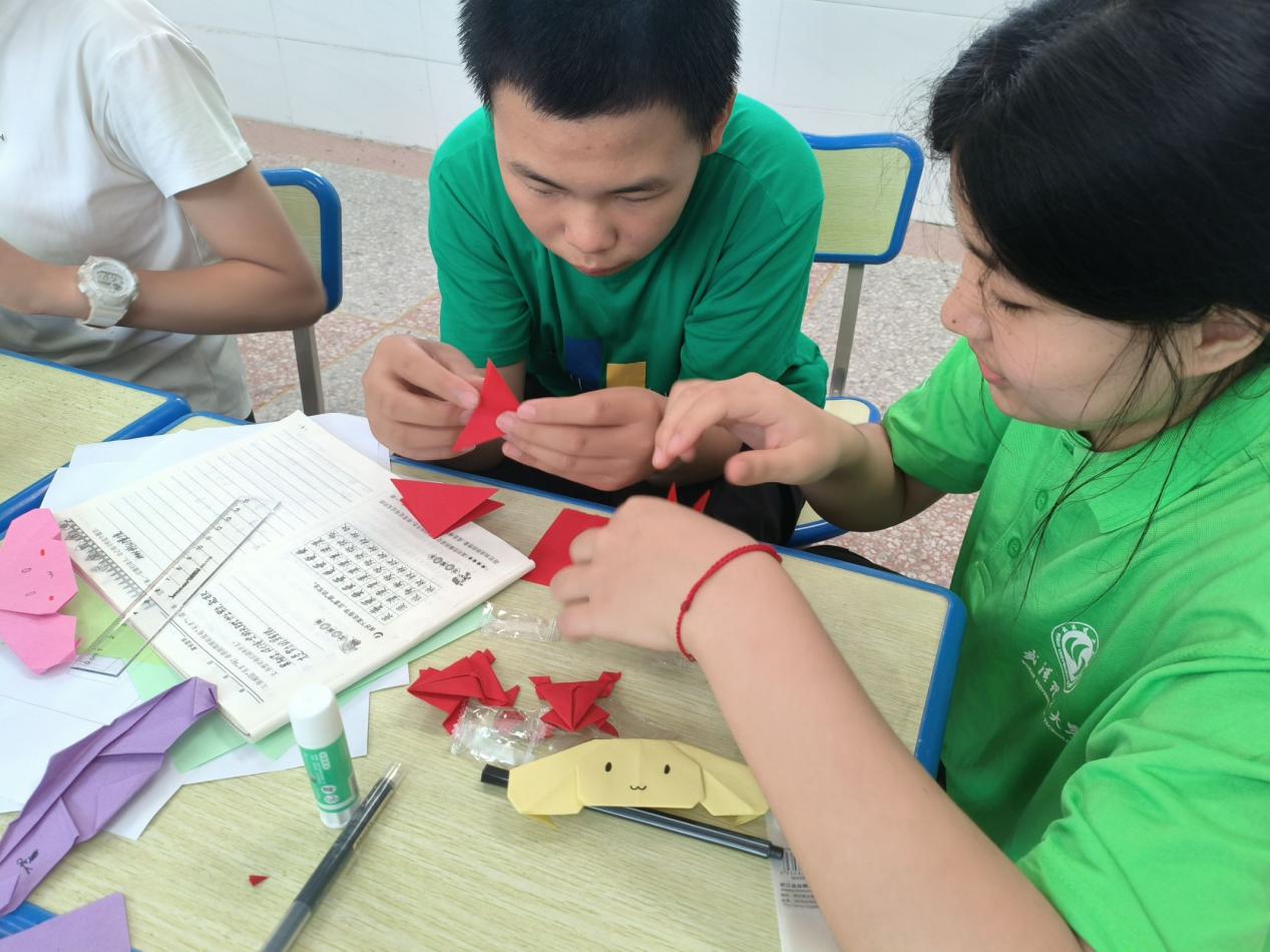 图为学生认真参与折纸活动