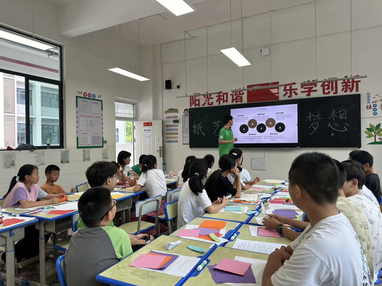 纸上飞花,稚子思绪纷飞如画;纵横折叠,梦想随风启航若诗。电竞盘口-电竞菠菜 “益路童行”暑期社会实践队于7月12日下午在湖北省襄阳市保康县后坪村中心学校开展了“纸艺碰撞童心,作翼护梦远航”主题教育课程,旨在培养学生动手创造能力,让学生树立为理想不懈奋斗的人生目标。