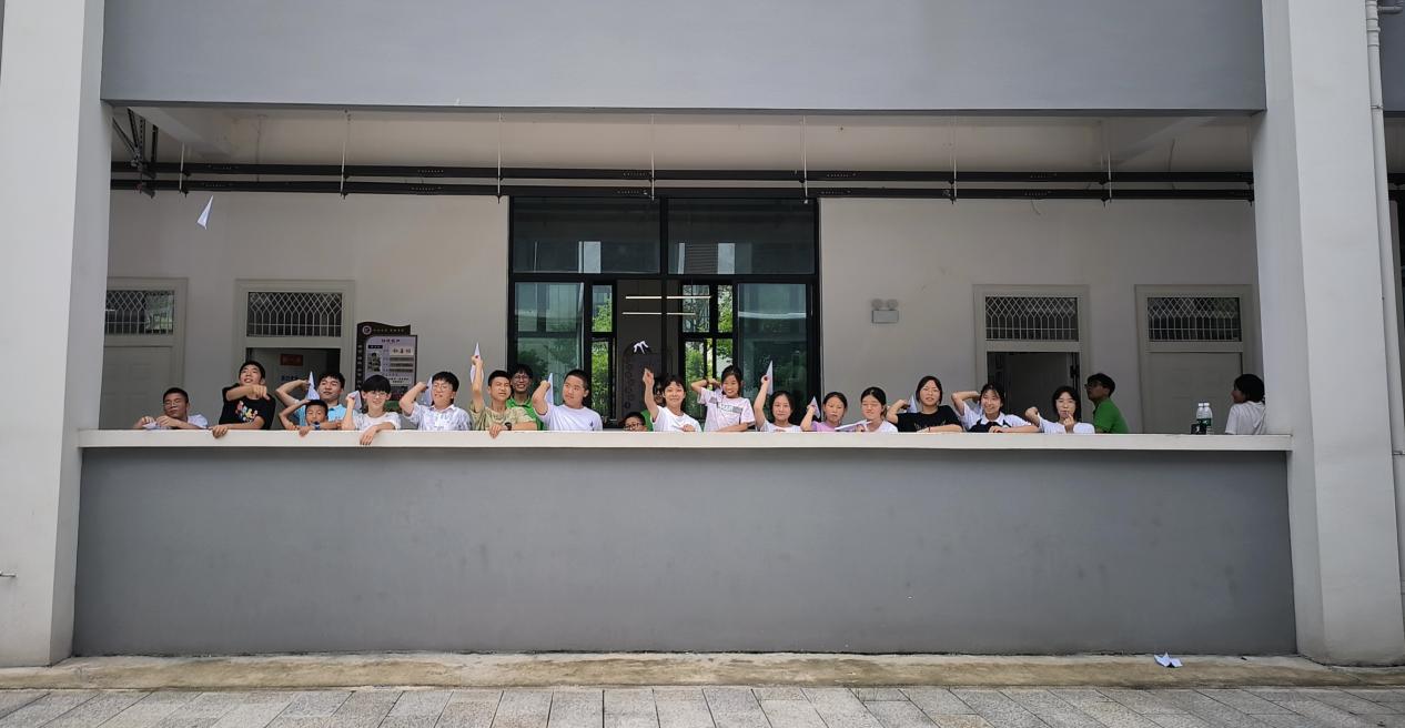 图为学生一起放飞纸飞机