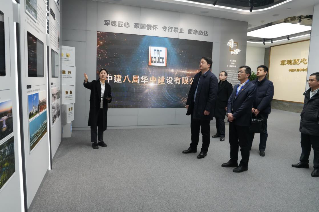 会议开始前,中建八局华中建设有限公司党委书记、董事长徐玉飞带领学院一行参观了公司电竞盘口展厅,详细介绍了公司发展历程、标志性成果、电竞盘口等内容。