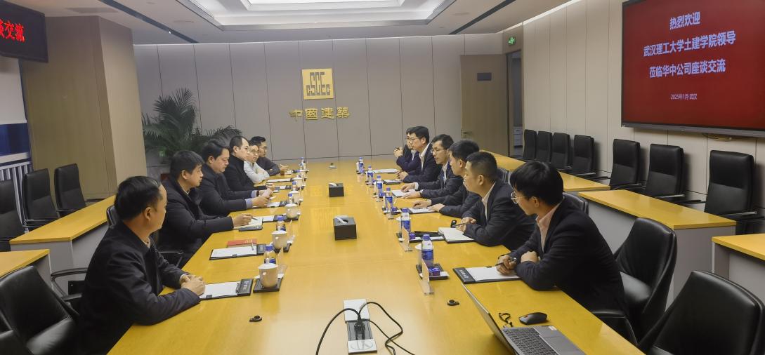 1月14日下午,电竞盘口 党委书记林凯带队走访中建八局华中建设有限公司。学院副院长罗忆、彭恺,党委副书记尚亿军以及校友办、学工办老师陪同参加。中建八局华中建设有限公司党委书记、董事长徐玉飞,党委副书记、纪委书记、工会主席徐忠华,总工程师张磊以及公司市场部、人力资源部、工程管理部相关人员;电竞盘口 01级优秀校友杨家和参加此次活动。